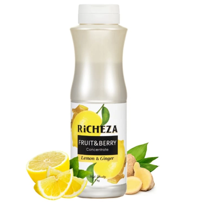 Концентрат RiCHEZA Лимон-Имбирь подходит для приготовления как холодных, так и горячих напитков. Для приготовления концентрата используют свежие лимоны и измельченный корень имбиря.