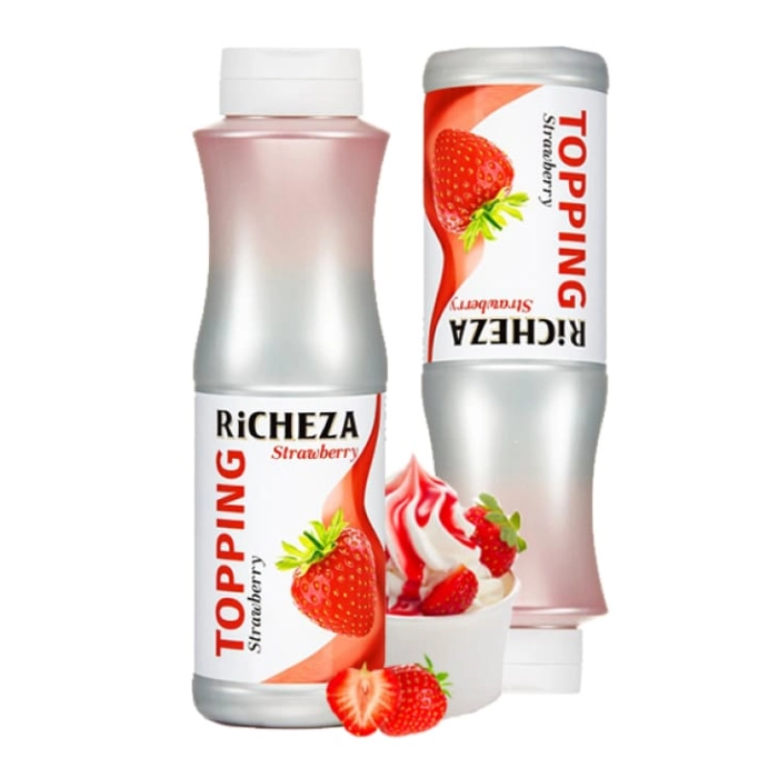 RiCHEZA topping çiyələk-evdə hazırlanmış çiyələk mürəbbəsinin qeyri-adi dadı və dəbdəbəli giləmeyvə ətri ilə parlaq qırmızı sous. Süni əlavələr və GMO yoxdur. Uşaqların fəaliyyətinə və diqqətinə mənfi təsir göstərə biləcək boyalar olmadan.